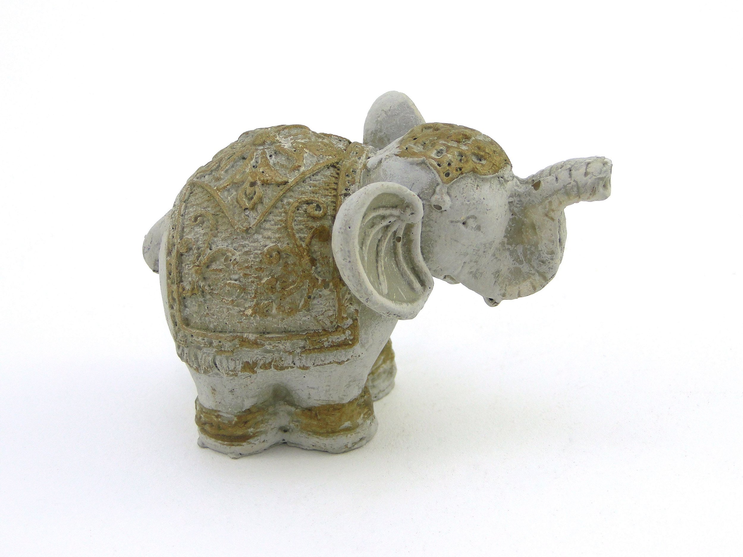 elefante no budismo simboliza a força da mente e no hinduísmo é a encarnação de Ganesha cultuando em prol da sabedoria e prosperidade. Na decoração Feng Shui, o elefante com tromba para cima atrai sorte, sucesso e prosperidade, com a tromba para baixo, atrai fertilidade, posicionado de frente para a porta, abençoa todos os visitantes da casa, e de costas para a entrada da casa traz proteção e saúde àqueles que estão dentro dela.