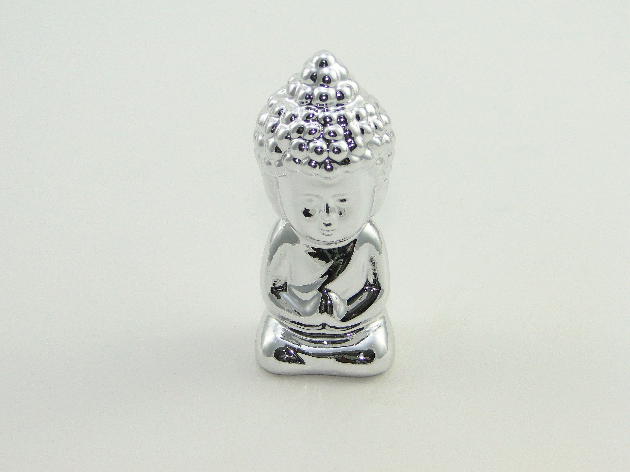 Estátua Mini Buda Meditando cor Prata Porcelana 7 cm