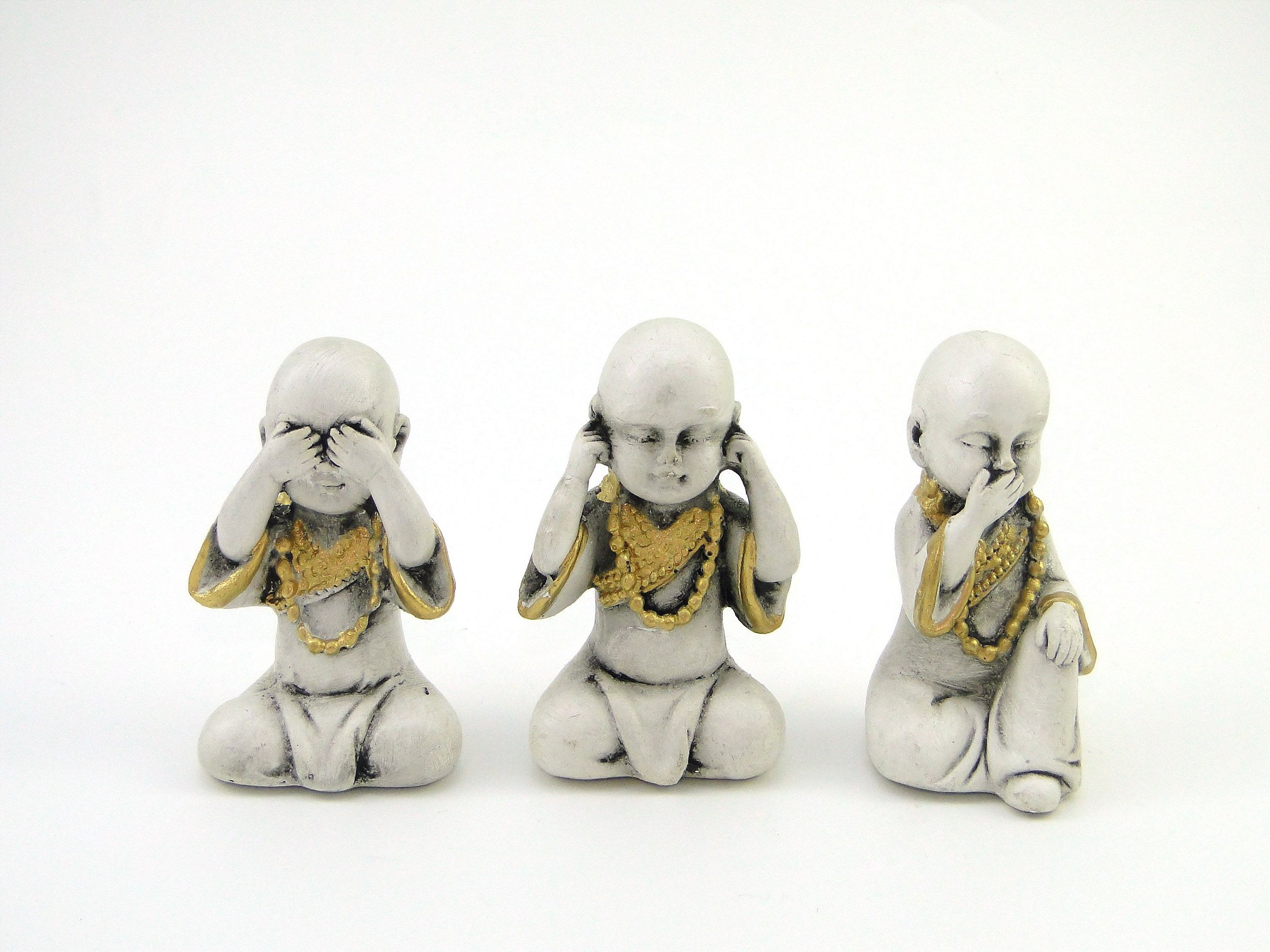 Trio Buda: Referencia aos “3 macacos Sábios*”, simbolizam paz e harmonia, protegem o lar das energias ruins e evita que o mal se espalhe.