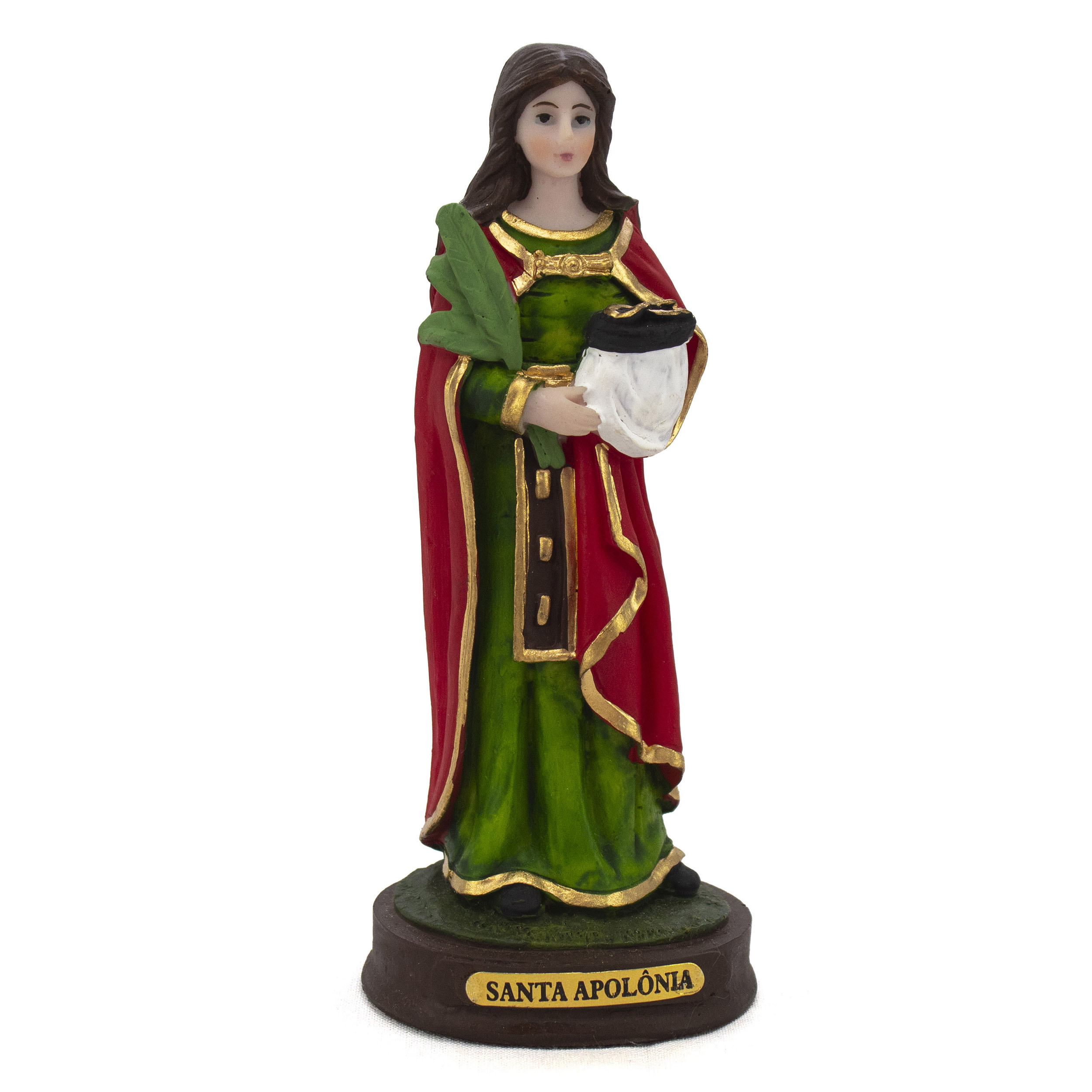 Apresentamos a imagem de SANTA APOLÔNIA, padroeira dos dentistas e intercessora das dores de dente. Esculpida em resina de alta qualidade e com aproximadamente 15 cm de altura, ela traz detalhes incríveis em suas vestes e símbolos de fé. Uma peça refinada, perfeita para altares, consultórios ou presentes marcantes. Sofisticação e espiritualidade em um só lugar.